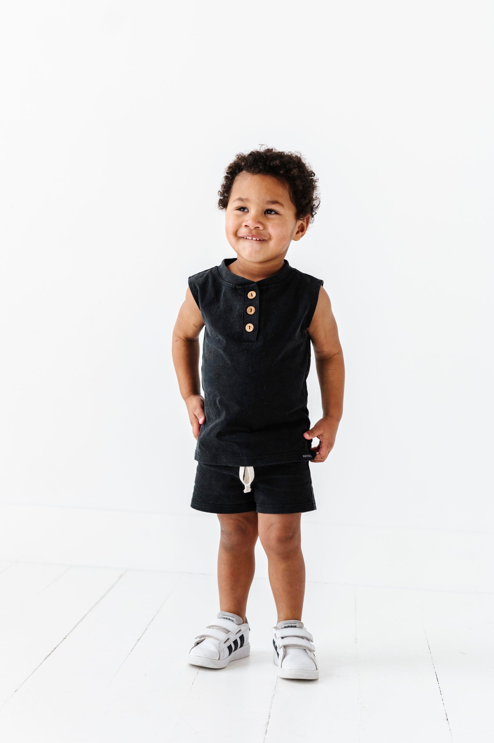 A perfect cotton (95%) and spandex (5%) blend of the dreamiest acid wash. Fit is true to size and above the knee. Waist is adjustable.