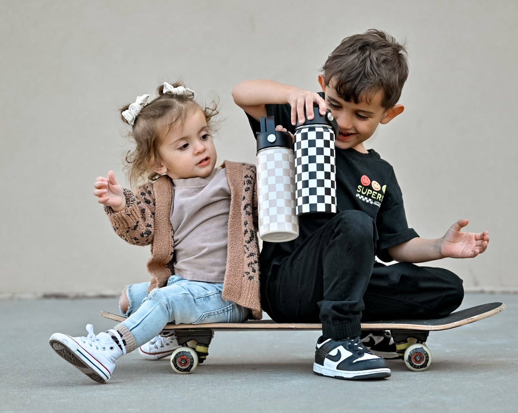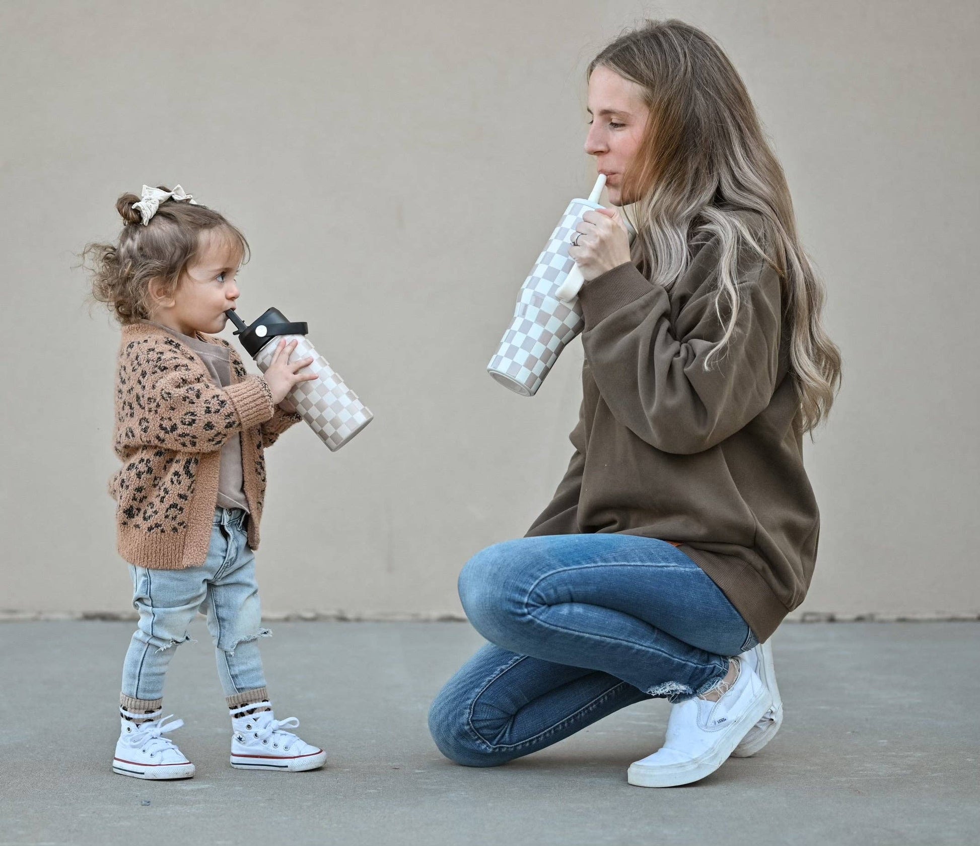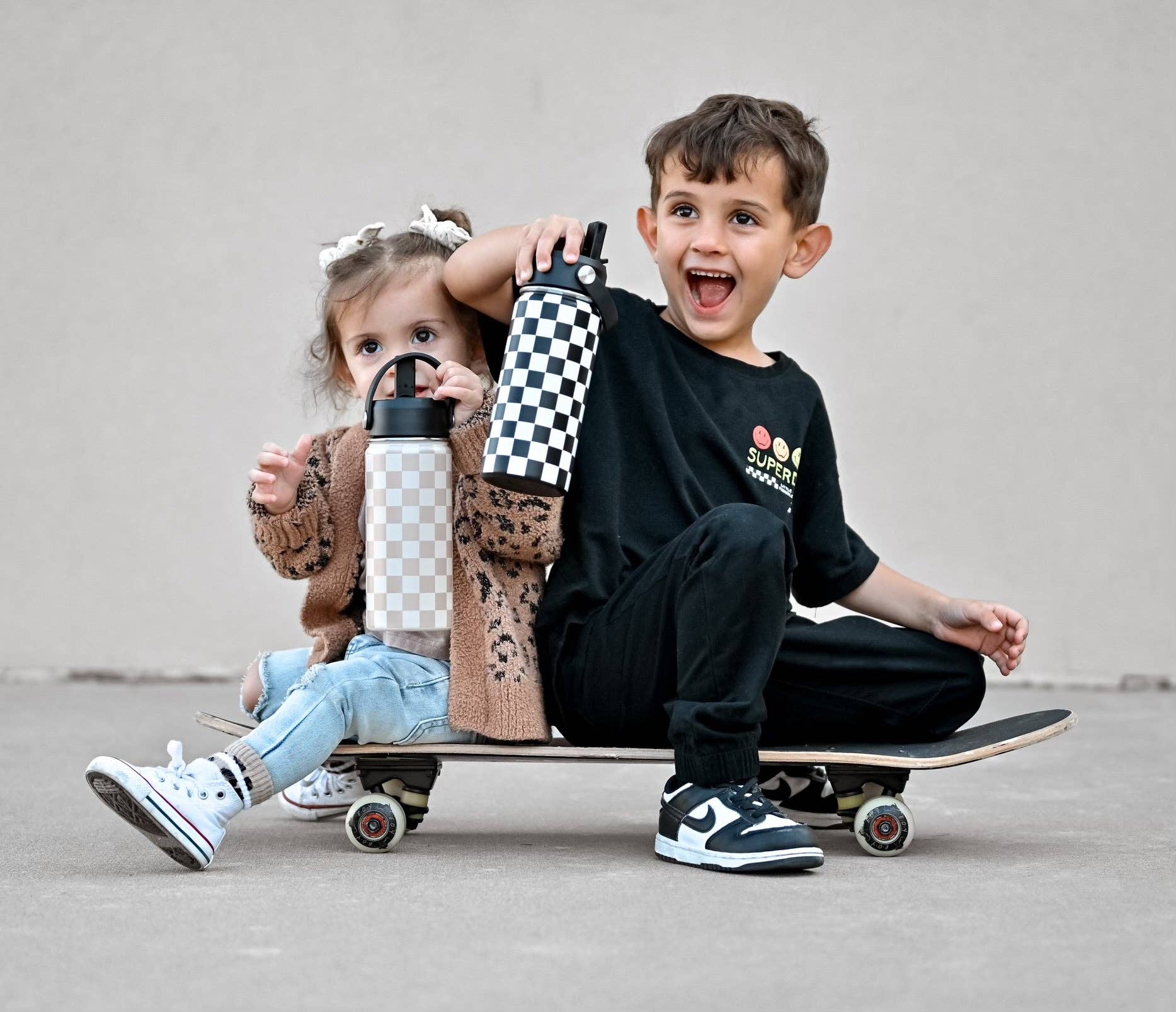 Beige Checker 16 Oz Water Bottle