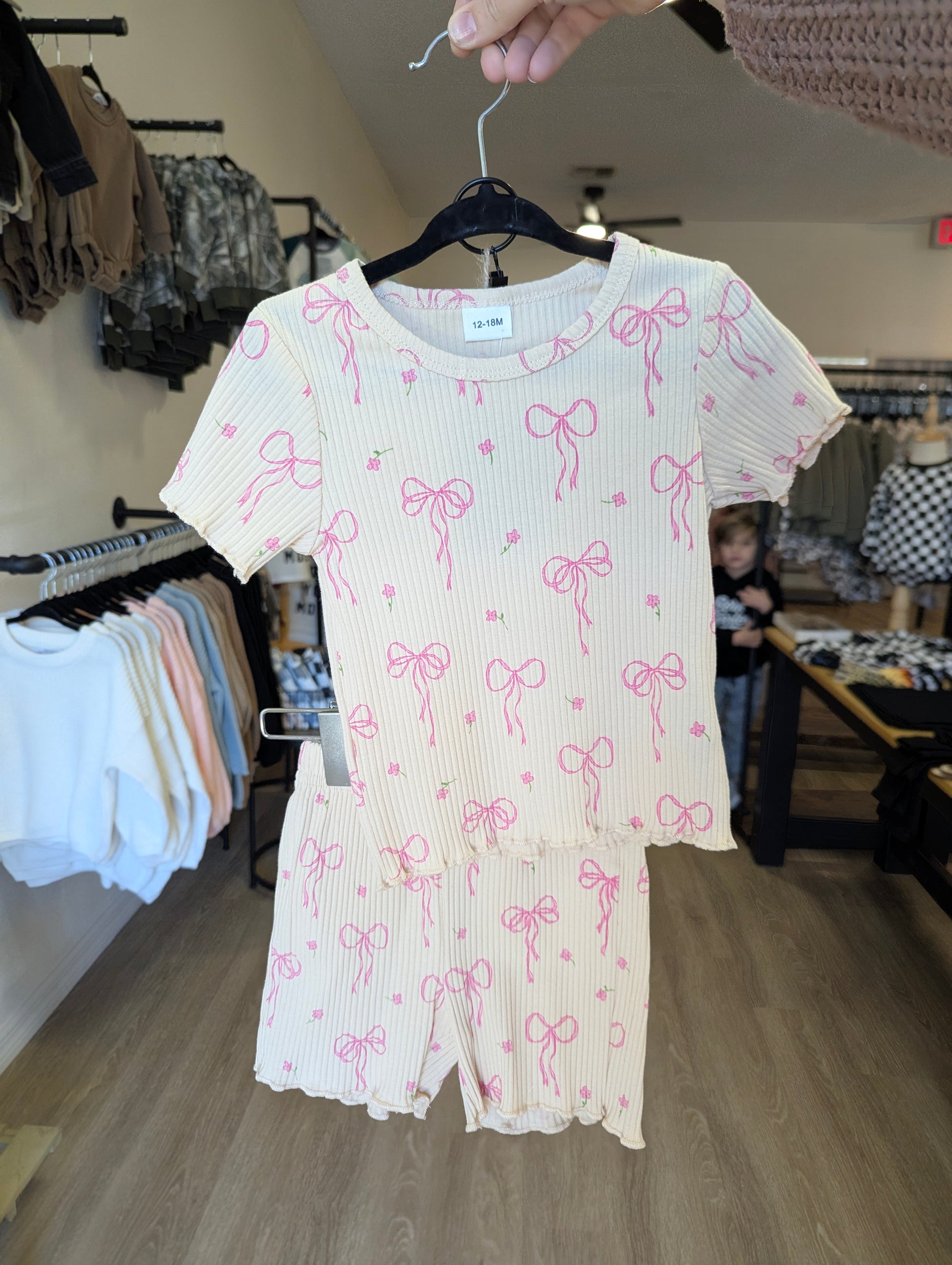 Coquette Beige Bows Ribbed Short Set - Girls