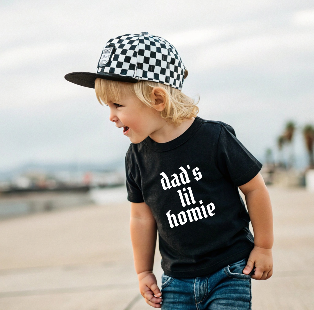 Join forces with dad in the Dad's Lil Homie Graphic Tee! Show off your bond with matching outfits. Be the coolest duo around and make memories with dad, your ultimate best friend!
