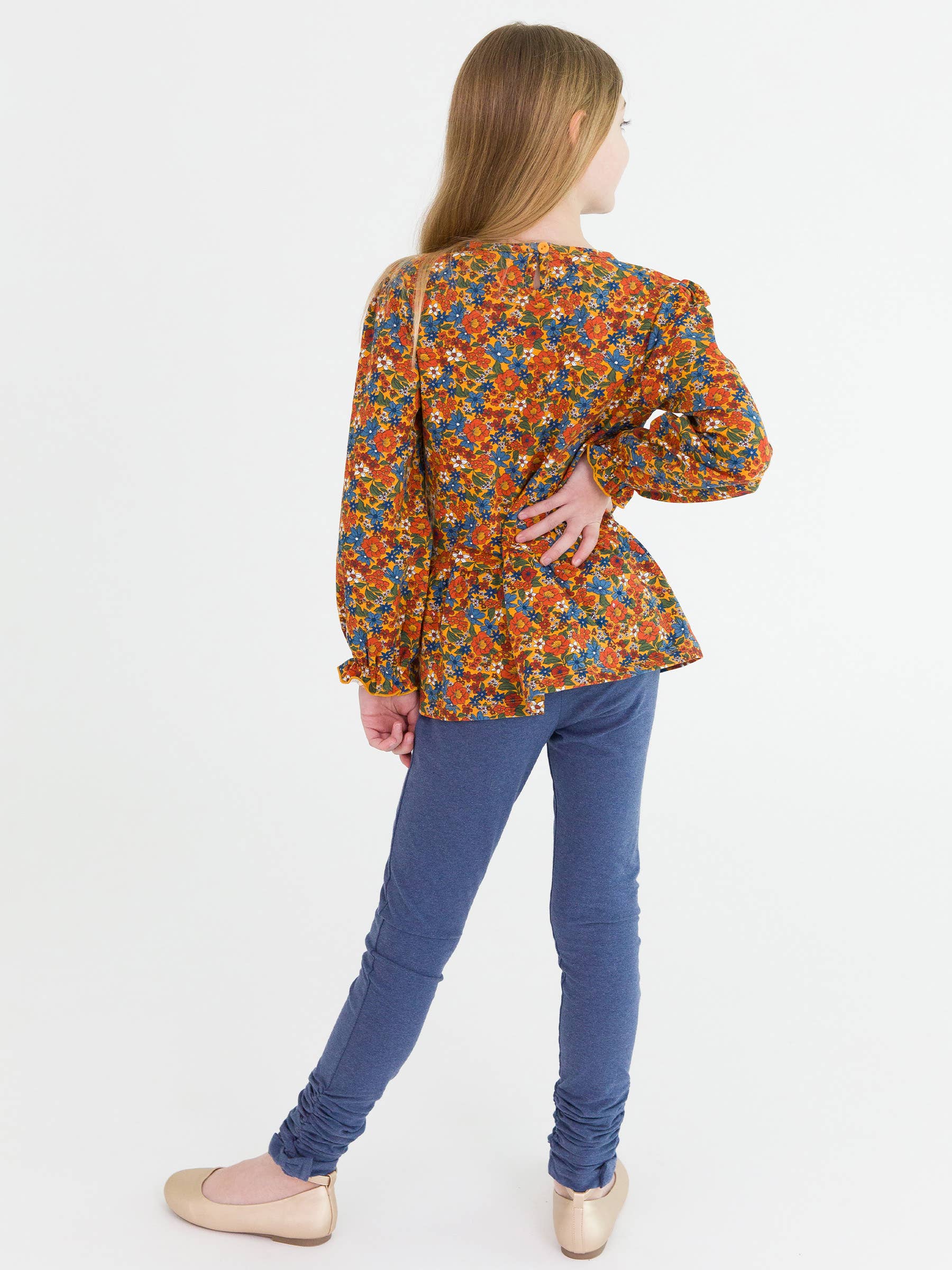 Shop our stylish and comfortable girls ruched bow leggings, designed to elevate any outfit with a touch of flair. These leggings feature adorable ruched detailing and bow accents, adding a charming twist to the classic legging style. Designed with soft and stretchy fabric, they provide a perfect fit and all-day comfort for your little fashionista. Like denim, but soft and stretchy and perfect for play!