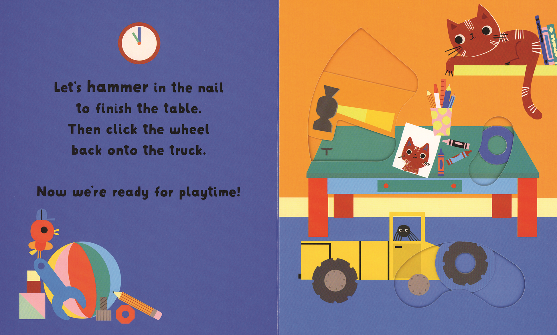 Spend a rewarding day hammering nails, drilling holes, and making repairs. Perfect for improving motor skills with moving sliders and transforming flaps, little children will want to return to these interactive play books again and again.