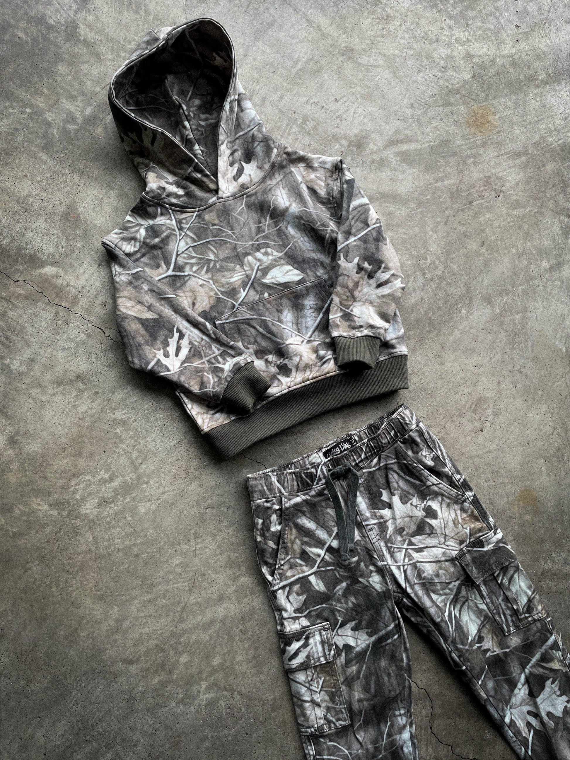 Our Best-Selling Camo, now in a Hoodie! This piece features a printed camo pattern on a super soft & stretchy, mid-weight French Terry with tonal rib at cuff and bottom band. This is fairly light and perfect from Fall to Spring! The fit is intentionally roomy - stick with your true to size!